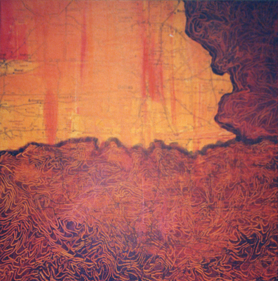 (Untitled) Magnolia Hotel painting 2002 - 2003 collaged map with acrylic on MDF & masonite 18 x 18 inches